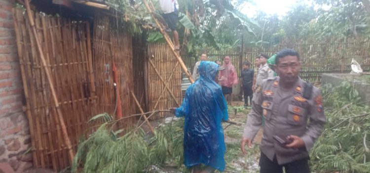 BONDOWOSO, Persindonesia – Anggota polsek Curah Dami Polres Bondowoso Polda Jatim bersama masyarakat dan pihak muspika membantu membersihkan pohon tumbang yang melintang di jalan desa serta membantu membersihkan dapur dan kandang sapi milik Ibu Hilatus Sholeha akibat dari terjangan angin puting beliung di desa Sumber Salak Kecamatan Curahdami, Kabupaten Bondowoso, Jawa Timur, Selasa (13/12/2022).