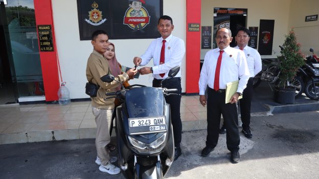 BONDOWOSO, Persindonesia.com – Sebuah kabar melegakan datang bagi Fredi Frenasicho, warga Desa Maskuning Wetan, Kecamatan Pujer, Bondowoso. Sepeda motor Yamaha NMAX warna hitam tahun 2022 dengan nomor polisi P 3243 QAM miliknya yang sebelumnya menjadi korban penggelapan, hari ini berhasil dikembalikan oleh Satuan Reserse Kriminal (Satreskrim) Polres Bondowoso tanpa dipungut biaya sepeser pun.