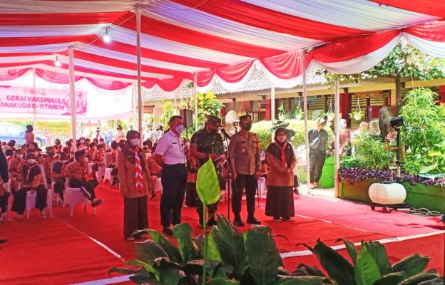 Kapolres Metro Jakarta Timur Kombes Pol Erwin Kurniawan SIK SH M.Hum bersama Dandim 0505/JT Kolonel Inf Persada Alam, menyampaikan dalam kegiatan vaksinasi mengajak Pemerintah Kota Administrasi Jakarta Timur untuk ikut mensukseskan program vaksinasi COVID-19 bagi anak usia 6 sampai 11 tahun.