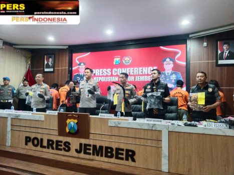 Jember,Persindonesia.com – Kepolisian Resor (Polres) Jember menggelar konferensi pers terkait hasil pelaksanaan “Operasi Sikat Semeru 2025″. Operasi yang berlangsung sejak 22 Oktober 2025 ini bertujuan menekan angka kriminalitas.