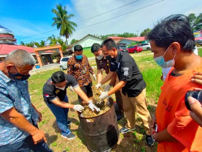 Narkotika yang akan dimusnahkan ini adalah tangkapan Satresnarkoba Polres Kampar dari tersangka KB dengan TKP di Desa Kasikan Kecamatan Tapung Hulu, pada Rabu malam (28/07/2021).