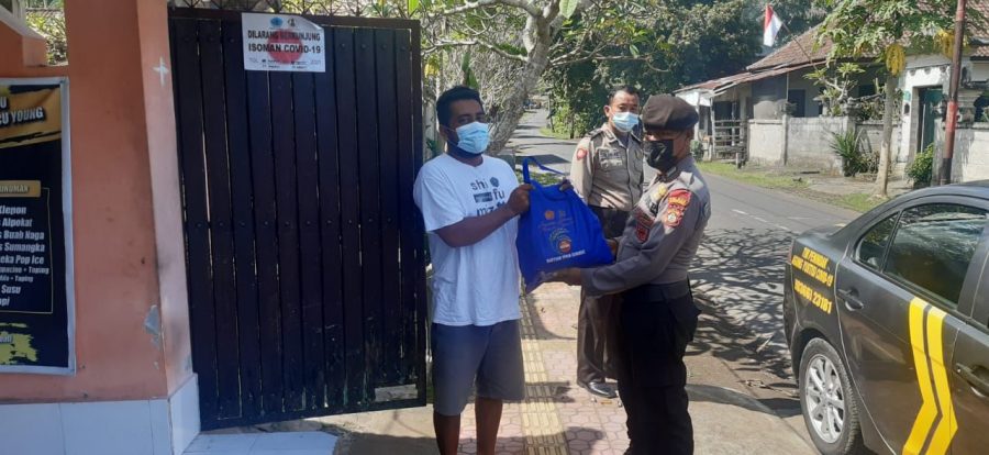 “Hari ini kami salurankan 10 paket sembako dari polres klungkung kepada masyarakat yang terdampak Covid-19.” Ucapnya.