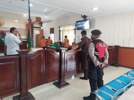 Pengamanan yang digelar ini dalam rangka memberikan rasa aman dan nyaman kepada pihak pengadilan, para Terdakwa maupun para peserta sidang sehingga sidang dapat berjalan aman dan kondusif. Nova Dwi