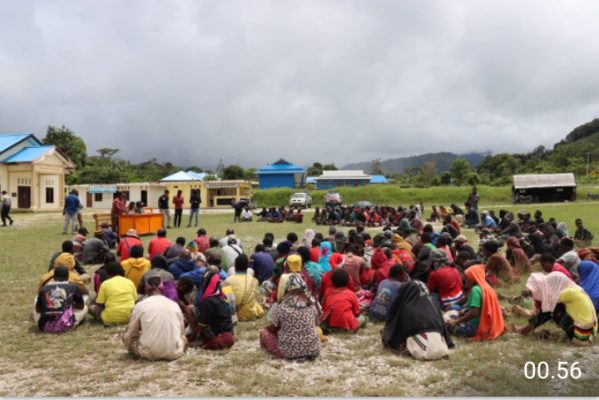 Papua Mamberamo Tengah – Kapolres Mamberamo Tengah AKBP Rahmad Koharudin S.h Melalui Personil Bhabinkamtibmas Polres Mamberamo Tengah Brigpol Wene W Walilo dan Brigpol Ironi Itlay telah Fasilitasi Penyelesaian Masalah Kasus Pembunuhan dan Pembakaran Rumah secara Kekeluargaan, Rabu (08/02/2023).