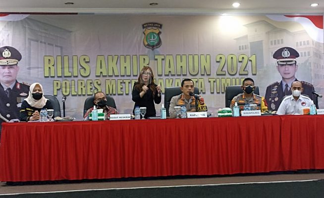 Hal ini disampaikan secara resmi oleh Kapolres Metro Jakarta Timur saat menggelar rilis akhir tahun 2021 di Aula Lantai VI Polres Metro Jakarta Timur pada Jum’at 31/12/2021.