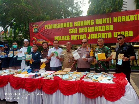 Pemusnahan barang bukti Narkoba tersebut di pimpin langsung oleh Kapolres Metro Jakarta Utara Kombes Pol Gidion Arif Setyawan didampingi Dandim 0502 Jakarta Utara Kolonel Kav Topan Tri Anggoro BS, dan Walikota Jakarta Utara.