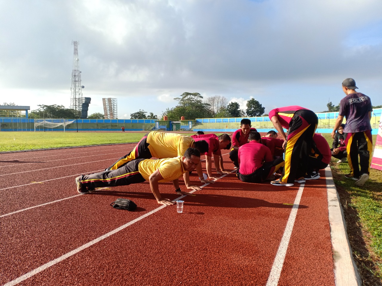 PANGKALPINANG — Bertempat di Stadion Depati Amir Gabek 1 Kecamatan Gabek Kota Pangkalpinang,Selasa 16/3/2021 ,Personil Polres Pangkalpinang melaksanakan Tes Kesamaptaan Jasmani (TKJ) periode semester ke-I TA. 2021.