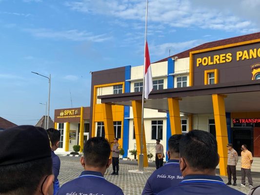 Pangkalpinang Persindonesia.com – Sebagai bentuk penghargaan terhadap para Pahlawan Revolusi yang gugur akibat pemberontakan yang dilakukan Partai Komunis Indonesia (PKI), Polres Pangkalpinang mengibarkan Bendera Merah Putih Setengan Tiang, Jumat 30/9/2022.