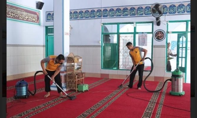 Sejumlah sudut ruang masjid tak luput dari aksi bersih-bersih petugas. Kapolres berharap, dengan kegiatan membersihkan masjid jelang Ramadhan ini masyarakat semakin nyaman dan khusyuk dalam beribadah.