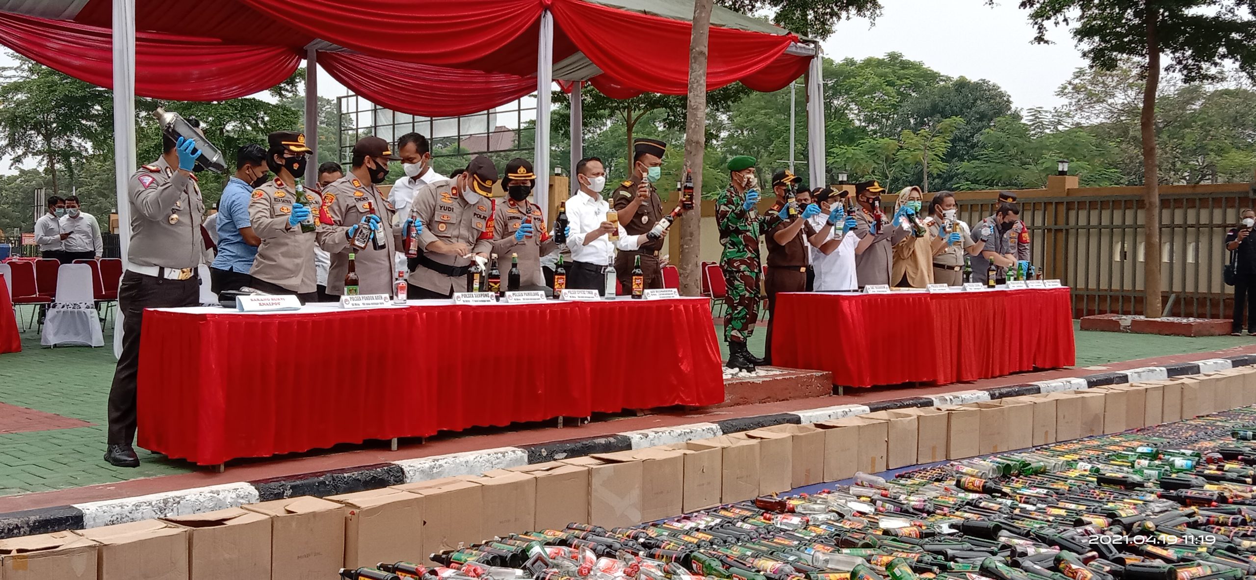 Dikatakan Kapolres Tangsel AKBP Iman Imanudin bahwa, pemusnahan ribuan Miras tersebut, berikut dengan knalpot bising yang meresahkan masyarakat.