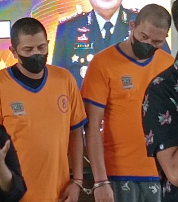Dua orang Tersangka yang diamankan, RM (45) asa Wanasari Kel. Dukuh Puri Kaja Kec. Denpasar Utara Kota Denpasar dan EM (36) warga Jalan Tanah Merah Kel. Tanah Kali Kedinding Kec. Kenjeran Kota Surabaya.