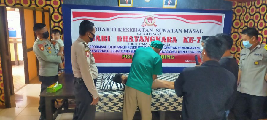 Kepolisian Resor Melawi, Polsek Belimbing, Polda Kalimantan Barat (Kalbar ) terus memperlihatkan bakti sosial ke masyarakat dengan menggelar Bhakti Kesehatan Sunatan Massal Dalam rangka Hari Bhayangkara Ke-75, Senin (28/06/2021).