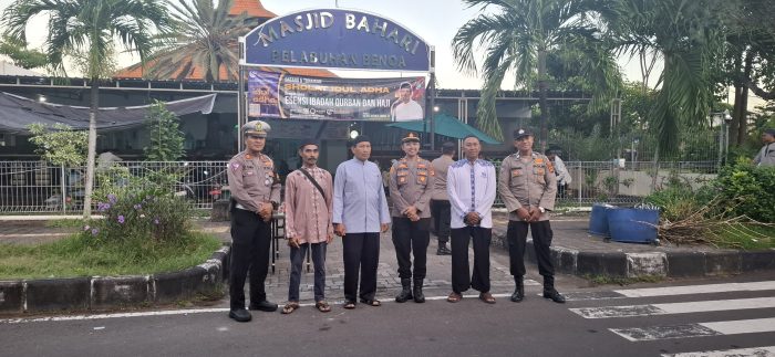 Benoa, Hari Jumat, 6 Juni 2025, Sekira pukul 06.00 Wita bertempat di Masjid Bahari pelabuhan Benoa, Personil Polsek Benoa meaksanakan pengamanan kegiatan Sholat Ied Hari Raya Idul Adha 1446 H tahun 2025 yang dipimpin langsung oleh Kapolsek Benoa AKP Ni Wayan Adnyani Prabawati, S.Ik.