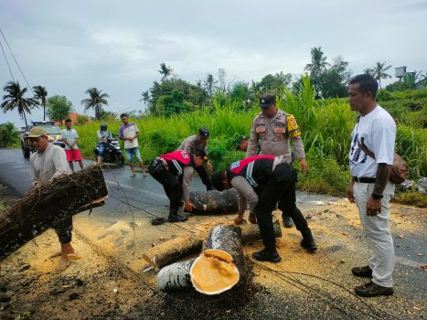 Polsek Blahbatuh Bersinergi Kolaborasi Tangani Bencana Pohon Tumbang di Desa Pering