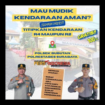“Bagi masyarakat yang ingin mudik dan merasa khawatir meninggalkan kendaraannya di rumah, silakan menitipkan kendaraan R2 maupun R4 secara gratis di Polsek Bubutan. Dengan ketentuan Surat kendaraannya lengkap, FC identitas pemilik, dan didokumentasikan saat penitipan, Kami siap membantu menjaga keamanan kendaraan masyarakat selama ditinggal mudik,” ujar Aiptu Mubarok.