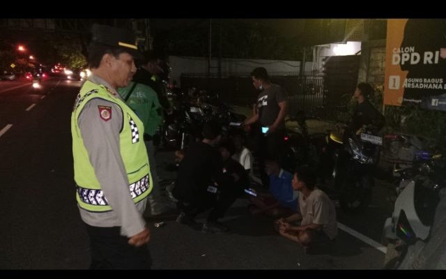 Denpasar – Pada hari ini, Sabtu, tanggal 30 Desember 2023, pukul 02.30 Wita, menindak lanjuti laporan masyarakat tentang adanya sekumpulan anak muda kumpul-kumpul menutup jalan yang berpotensi melakukan balap liar (terek-terekan), bertempat di Jalan Gatot Subroto Barat Denpasar (Sebelah Barat Burger King), selanjutnya Pawas, Padal dan piket Intelkam Polsek Denpasar Barat (Polsek Denbar) langsung bergerak ke lokasi.