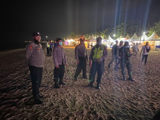 Denpasar – Personil Gabungan Polresta dan Polsek Densel bersama Pamswakarsa (Sanur Bersatu), Pecalang (Bankamda) serta pengamanan Internal melaksanakan pengamanan kegiatan Jelajahin Sanur Festival hari ke-2 di Pantai Grand Inna Bali Beach, Sanur Kaja. Sabtu (28/05) sore.