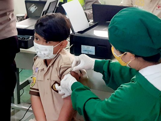 Denpasar Timur (Persindo) – Polsek Denpasar Timur(Dentim) berkelanjutan laksanakan percepatan vaksinasi untuk usia anak 6 -11 tahun, kali ini vaksinasi tahap dua dilaksanakan di Albanna School tepatnya di Jalan Yeh Ho Denpasar, selama dua hari ( Jumat 28 Januari 2022).