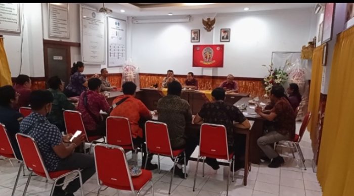 Polsek Dentim – Kapolsek Denpasar Timur (Dentim) Kompol Nyoman Darsana S.H.,didampingi Kanit Binmas Polsek Dentim Iptu I Nyoman Sujana S.H.,bersama Bhabinkamtibmas Kelurahan Sumerta kembali melaksanakan Kegiatan Jum’at Curhat yang bertempat di Ruang Rapat Kelurahan Sumerta, Jln. Wr. Supratman, Denpasar Timur, Jumat (18/08/2023) pukul 10.00 wita.