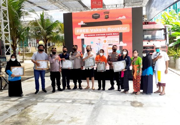 Denpasar (Persindonesia.com) – Polsek Denpasar Timur bersama Kebon Vintage Cars Bali kembali lakukan gebrakan masal Akselerasi Vaksin Covid-19 dosis ke III kini dengan target 1000 dosis vaksin Boster Astrazeneka, Jumat 1 April 2022. Sinergi dengan Tim Kes Klinik Polresta Denpasar, Mahasiswa dan Puskesmas II Dentim.