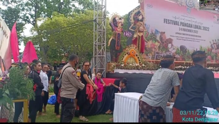 Denpasar – Personil Polsek Dentim melaksanakan pengamanan Kegiatan Pembukaan Festival Pangan Lokal Tahun 2022, dengan tema “Melalui Festival Pangan Lokal, Kita Wujudkan Ekonomi Kerthi Bali, Menjadi Tonggak Peradaban Bali Era Baru”. Bertempat di Lapangan Bajra Sandi (sebelah timur Monumen Bajra Sandi) Dentim, Kamis (3/11/22) Sore.