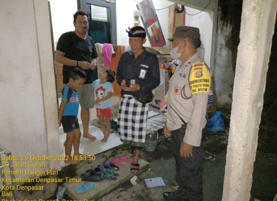 Denpasar – Bhabinkamtibmas Desa Penatih Dangin Puri Aiptu Wayan Suama melaksanakan pendampingan dalam pelaksanaan tibduktang,yang mengambil lokasi di Dusun Buaji, Desa Penatih Dangin Puri, Kecamatan Denpasar Timur, sabtu Sabtu (29/10/22) 2022 Pukul 18.30 Wita.