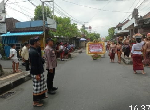 Ditempat terpisah Kapolsek Dentim Kompol I Nengah Sudiarta S. sos mengatakan “Dengan kehadiran personil Bhabinkamtibmas dan unsur pecalang Desa Adat lainnya dalam melakukan pengamanan dan pengaturan lalu lintas diharapkan kegiatan upacara keagamaan dapat berjalan aman dan lancar,” ungkap Kapolsek.