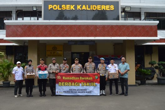 Di depan Mako Polsek Kalideres, terlihat suasana penuh kehangatan dan kebersamaan saat anggota polisi dengan senyum ramah membagikan takjil kepada masyarakat yang melintas.