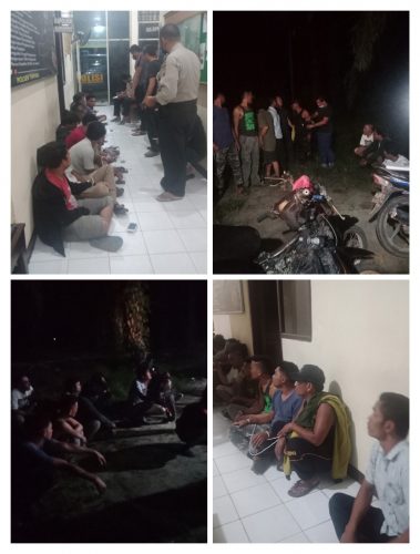 Tapung – Polsek Tapung mengamankan belasan pemuda yang diduga akan melakukan tawuran di warung pisang-pisang Jalan lintas Desa Sumber Makmur Kecamatan Tapung, Rabu (07-07-2021) sekira pukul 02.00 dini hari tadi.