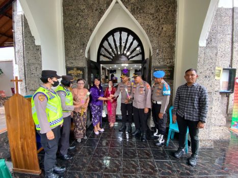 Gianyar – Memperingati Hari Ibu sejumlah Polwan dari Polres Gianyar melakukan aksi simpatik dengan membagi-bagikan bunga mawar kepada Jemaat Perempuan yang ingin beribadah ke Gereja khususnya Jemaat Perempuan.