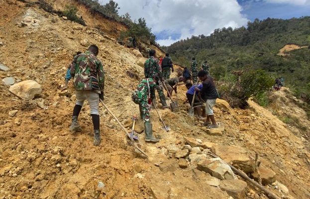 Hal tersebut disampaikan oleh Danpos Balingga Satgas Yonif Mekanis 203/AK Lettu Inf Faisal Ramadhan dalam keterangannya di Distrik Balingga. “Kami bersama dengan tokoh masyarakat dan masyarakat Distrik Balingga bekerja sama membersihkan tanah-tanah maupun bebatuan yang menutupi akses jalan dari Distrik Balingga menuju Tiom akibat longsor,” ungkap Danpos Balingga.