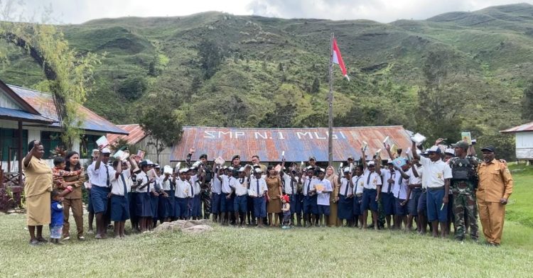 “Saya mengucapkan terima kasih banyak kepada Bapak TNI Pos Malagay yang telah memberikan materi baris-berbaris serta membagikan alat tulis hingga pakaian sekolah untuk murid-murid, semoga kebaikan yang diberikan kepada kami dibalas oleh Tuhan Yang Maha Esa,” ucapnya.