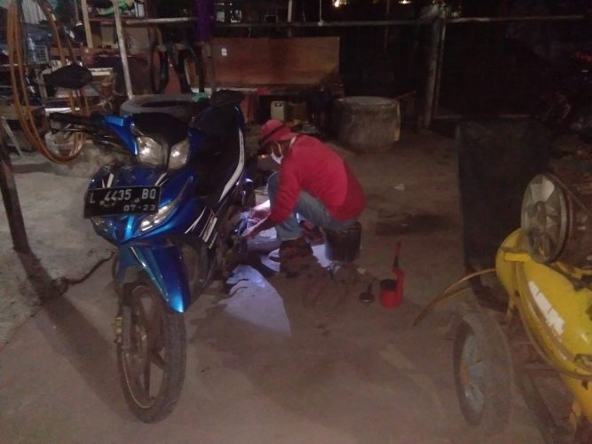 Disaat petugas gabungan berpatroli di wilayah kaliwaron dan sekitarnya, bengkel ini hanya mendapatkan teguran dari petugas,” tetap patuhi prokes, jangan lupa pakai masker”, tutur pak warno menirukan ucapan petugas. (Yudi)