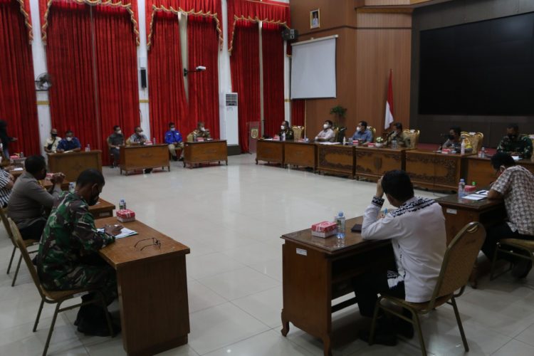 Kapolres Banjarbaru AKBP Doni Hadi Santoso, S.I.K., M.H. menyampaikan saat mengadakan rapat berkaitan dengan PPKM Level IV di Kota Banjarbaru bersama Wali Kota H.M. Aditya Mufti Arifin SH.MH. dan Forkopimda, di Aula Gawi Sabarataan, Sabtu (24/7/21).