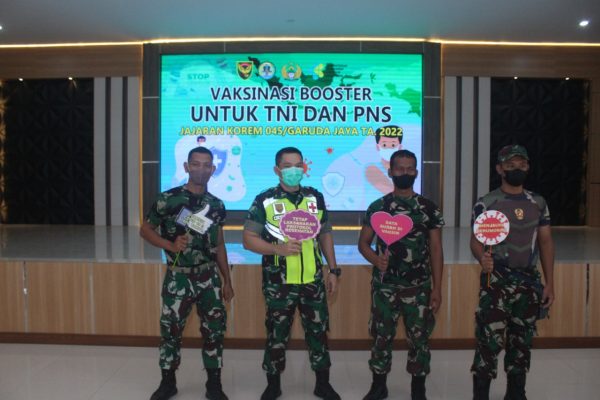 Pangkalpinang Persinsonesia.com – Korem 045/Garuda Jaya menggelar vaksinasi Covid-19 tahap ke Tiga bagi Prajurit dan Pegawai Negeri Sipil (PNS) Korem dan jajarannya serta Satuan Badan Pelaksana Korem (Satbakakrem),Rabu 26/01/2022.