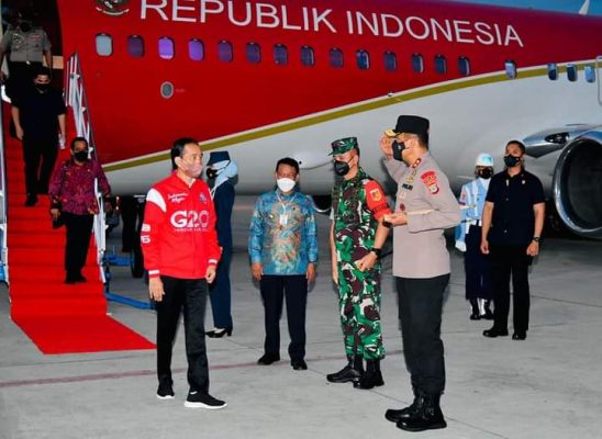 Presiden RI Ir. Joko Widodo dan Rombongan, Tiba Di Bandara Sis – Aljufri Mutiara Palu Disambut Gubernur Sulawesi Tengah H. Rusdy Mastura dan Panglima XIII Merdeka dan Unsur Forkopimda Sulawesi Tengah, Tepat Pukul 18.15 Wita*, Kamis , 24 february 2022.