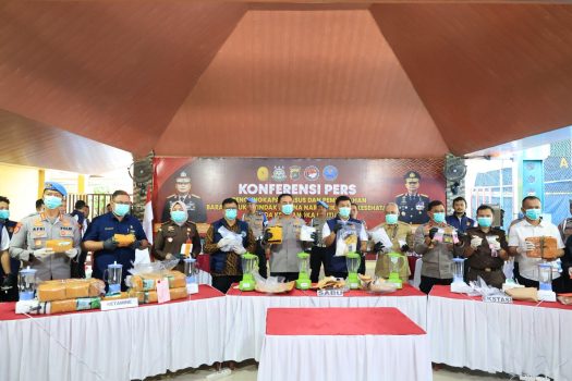 Total barang bukti yang berhasil disita antara lain sabu 7,9 kg, ganja 5,9 kg, ekstasi 5.551 butir, ketamin 47,3 kg, tramadol 145 ml, serta berbagai obat keras tanpa izin edar.