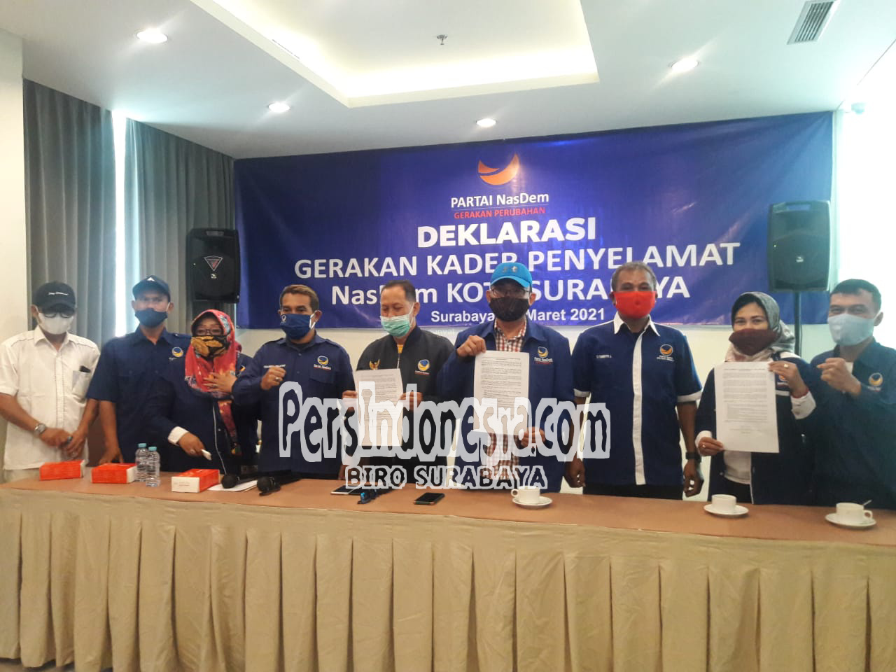 SURABAYA,Persindonesia – Mantan pengurus DPD NasDem Kota Surabaya bersama para kader NasDem se-Surabaya yang tergabung didalam Gerakan Kader Penyelamat partai Nasdem, melakukan “Deklarasi Gerakan Kader Penyelamat partai Nasdem”, Sabtu (13/3/21)