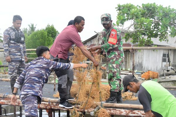 Danlantamal IX Brigjen TNI (Mar) Said Latuconsina, M.M., M.T., M.Tr.Opsla yang diwakili Kadispotmar Lantamal IX Letkol Laut (PM) Muhammad Darwin Dalimunte, S.H., M.M, M.Tr.Hanla melaksanakan panen rumput laut bersama dengan para petani rumput laut binaan Lantamal IX.
