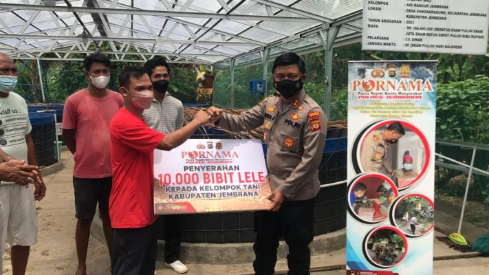 Persindonesia.com Jembrana – Program Purnama (Punia Rejeki Bantu Masyarakat) yaitu salah satu program unggulan Kapolres Jembrana. kapolres Jembrana AKBP I Dewa Gde Juliana, S.H., S.I.K., M.I.K. serahkan bibit lele kepada Kelompok Budidaya Ikan (Pokdakan) Air Mancur Jembrana. ertempat di Lingk./Kel. Sangkaragung, Kec./Kab. Jembrana, Jumat (28/1/2022)