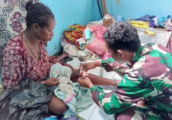 “Satgas menilai tingkat pengetahuan warga tentang kesehatan sangat kurang terbukti rata-rata penyakit yang dijumpai adalah luka berkoreng dimana hal ini erat hubunganya dengan perilaku pola hidup sehat masyarakat dihadapkan dengan kondisi lingkungan,” jelas Dansatgas Yonif 143/TWEJ Letkol Inf Ari Iswoyo Timor, S. Hub.Int.