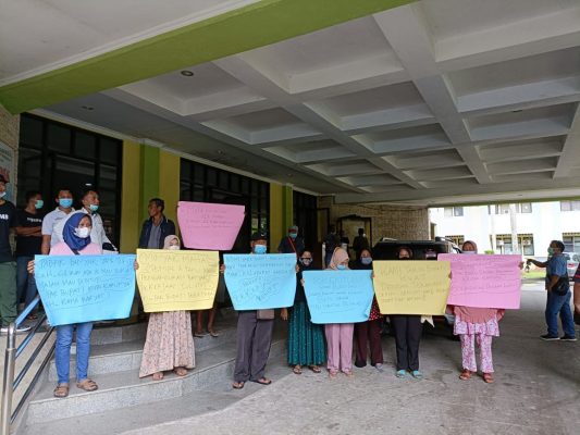 Evi bersama emak-emak yang lain yang mewakili warga Desa Sentul RT 04 RW 02 Kecamatan Balaraja, meminta Bupati Tangerang untuk segera membuka kembali PT SLI, agar suaminya dapat bekerja kembali.