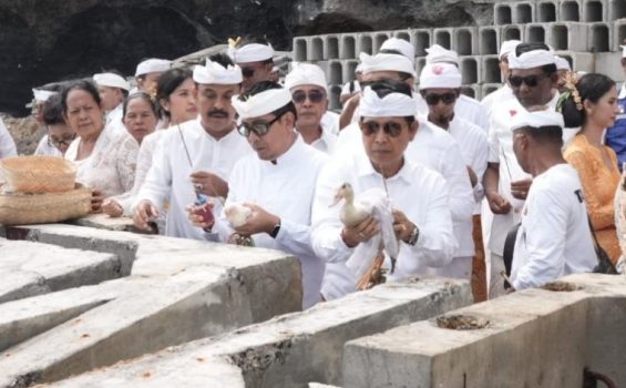 Uluwatu, Badung persindonesia.com – Pelaksanaan pujawali di Pura Luhur Uluwatu pada Rahina Anggara Kasih Medangsia, Selasa (13/5/2025), menghadirkan pengalaman spiritual yang berbeda dari sebelumnya. Untuk pertama kalinya, prosesi mulang pekelem digelar di kawasan Seawall yang terletak di bawah tebing Uluwatu, menyusul rampungnya pembangunan struktur pengaman tebing tersebut.