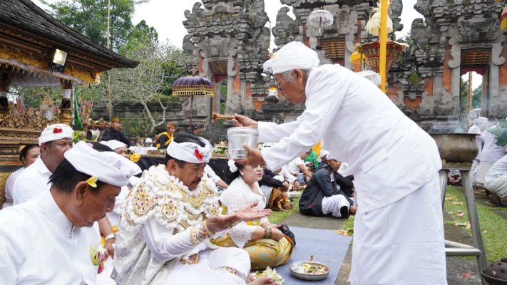 Lumajang – Wakil Gubernur Bali Prof. Tjok Oka Artha Ardhana Sukawati berkesempatan ngaturang ayah nopeng (menarikan topeng) Sidakarya di Pura Mandara Giri Semeru Agung Senduro Lumajang Jawa Timur, serangkaian puncak karya pujawali yang jatuh pada hari Rabu, Purnama Kasa, Buda Kliwon Wuku Pahang (13/7).