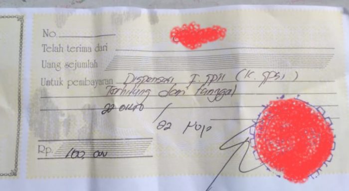 Diterangkan nya lebih lanjut, kalau tidak dibayar uang 300 Ribu dan kami selaku supir tidak nyaman karena ada ancaman dari mereka yang mengutip. Sebenarnya kami keberatan dengan uang 300 Ribu tersebut karena kegunaan nya tidak jelas untuk apa.