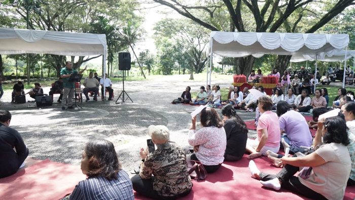 Persindonesia.com Jembrana – Persekutuan Wanita Kristen Jembrana (PWKJ) menggelar perayaan Paskah secara sederhana yang turut dihadiri Bupati Jembrana I Nengah Tamba di kebun raya Jagatnatha, Sabtu (27/4).
