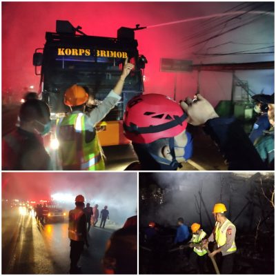 Saat tiba di TKP, personel Batalyon A Pelopor Satbrimob Polda Kaltim langsung bergerak cepat membantu masyarakat dan petugas pemadam kebakaran untuk memadamkan api.