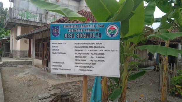 Persindonesia.com Tegal – Pembangunan jalan rabat beton di Desa Sidamulya, Kecamatan Warureja, Kabupaten Tegal, telah rampung pada akhir Mei 2025. Proyek infrastruktur desa yang didanai melalui Dana Desa (DD) ini membentang sepanjang 140 meter di RT 09 RW 02.