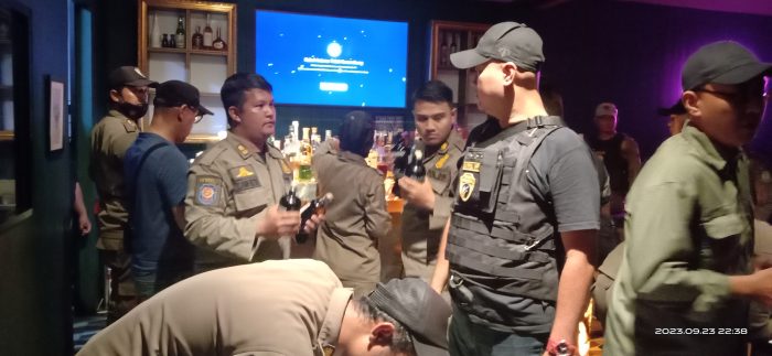 Tangerang Selatan,Persindonesia.com– Dalam upaya untuk memberantas peredaran minuman keras di wilayah Kota Tangerang Selatan, Satpol-PP Tangerang Selatan, bersama Polres Tangerang Selatan dan Kodim 0506/Tgr melaksanakan razia gabungan.Operasi yang digelar pada Sabtu (23/09/2023) dini hari berhasil mengungkap peredaran minuman keras di tiga titik tempat hiburan di wilayah kota Tangerang Selatan.Satu tempat disegel Karena Laporan dari Masyarakat.