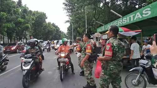 Pembagian Ta’jil sejumlah 100 Bungkus menyasar bagi Para Pengguna Jalan dan warga yang melintas di penyebrangan depan Universitas Pancasial ke Stasiun KA UP.